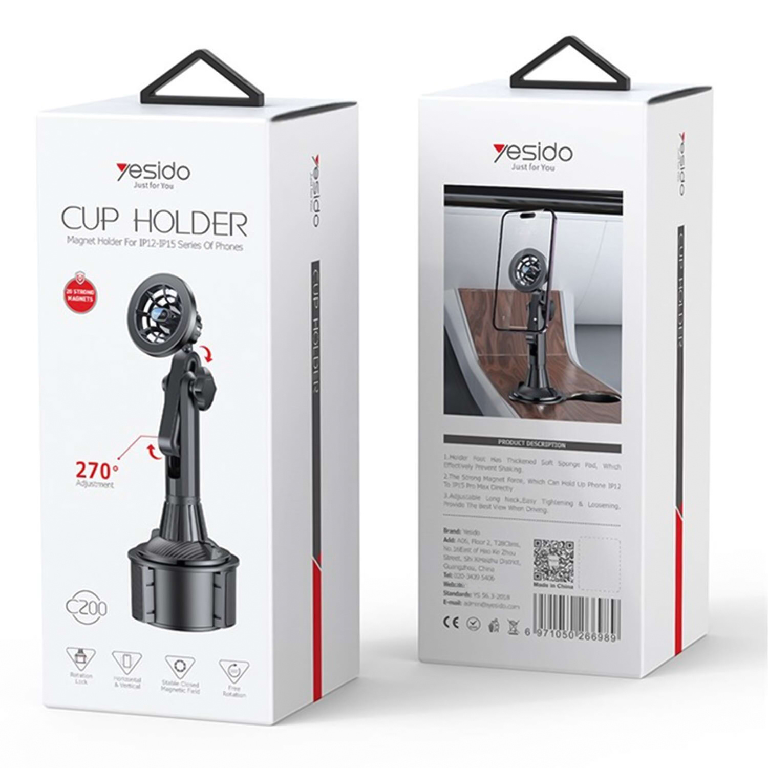 Uchwyt samochodowy magnetyczny na telefon MagSafe w miejsce na kubek Cup Holder Yesido C200 Czarny