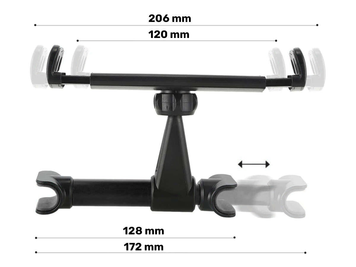 Uniwersalny uchwyt na tablet lub smartfon przeznaczony do montażu na zagłówku fotela samochodowego to produkt wykonany z wysokiej jakości materiałów, który pozwoli na wygodniejsze użytkowanie urządzeń mobilnych przes pasażerów zajmujących tylne siedzenia. Idealnie nada się do utrzymywania urządzeń, których grubość nie przekracza 1.5cm, natomiast minimalna szerokość to 12cm a maksymalna - 20.6cm.