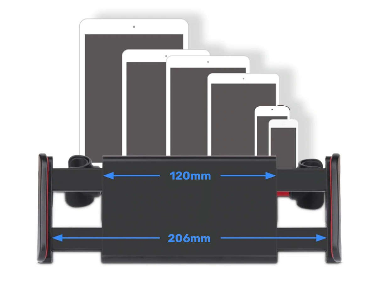 Uchwyt pasuje do większości modeli telefonów i tabletów z ekranem o przekątnej od 4" do 11" (przed zakupem należy sprawdzić dokładne wymiary). Mocowany jest do zagłówka przy pomocy specjalnych siłowników (128-172mm). Komponenty wykonane z wysokiej jakości materiałów sprawiają, że bez obaw możemy zamontować w uchwycie nawet dużych rozmiarów urządzenia. Uchwyt posiada miękkie, antypoślizgowe nakładki w wewnętrznej części szczęk zaciskowych, które zadbają o bezpieczeństwo naszego urządzenia. Wyposażony został w obrotową głowicę 360 stopni, która zapewnia użytkownikowi wygodę.