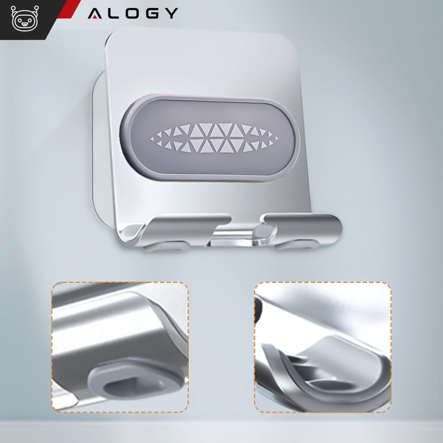Uchwyt ścienny na telefon tablet 4-12" wieszak hak haczyk aluminiowy do lustra na ścianę Alogy Srebrny