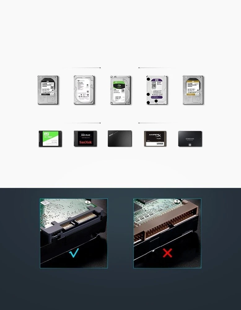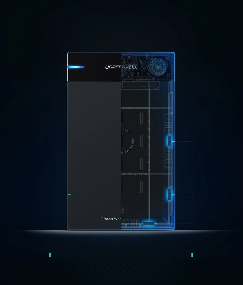Obudowa dla dysku HDD o wielkości 3,5'' z interfejsem SATA od marki Ugreen. Jest to produkt, którego główne zadanie to zabezpieczenie dysku i zapewnienie szybkiej transmisji danych przez port USB 3.0. Kieszeń jest kompatybilna z systemami Windows, Linux i Mac OS. Dzięki niemu podłączysz dysk 3,5'' do komputera, telewizora lub konsoli do gier. Kieszeń zasilana jest za pomocą dołączonego zasilacza sieciowego.