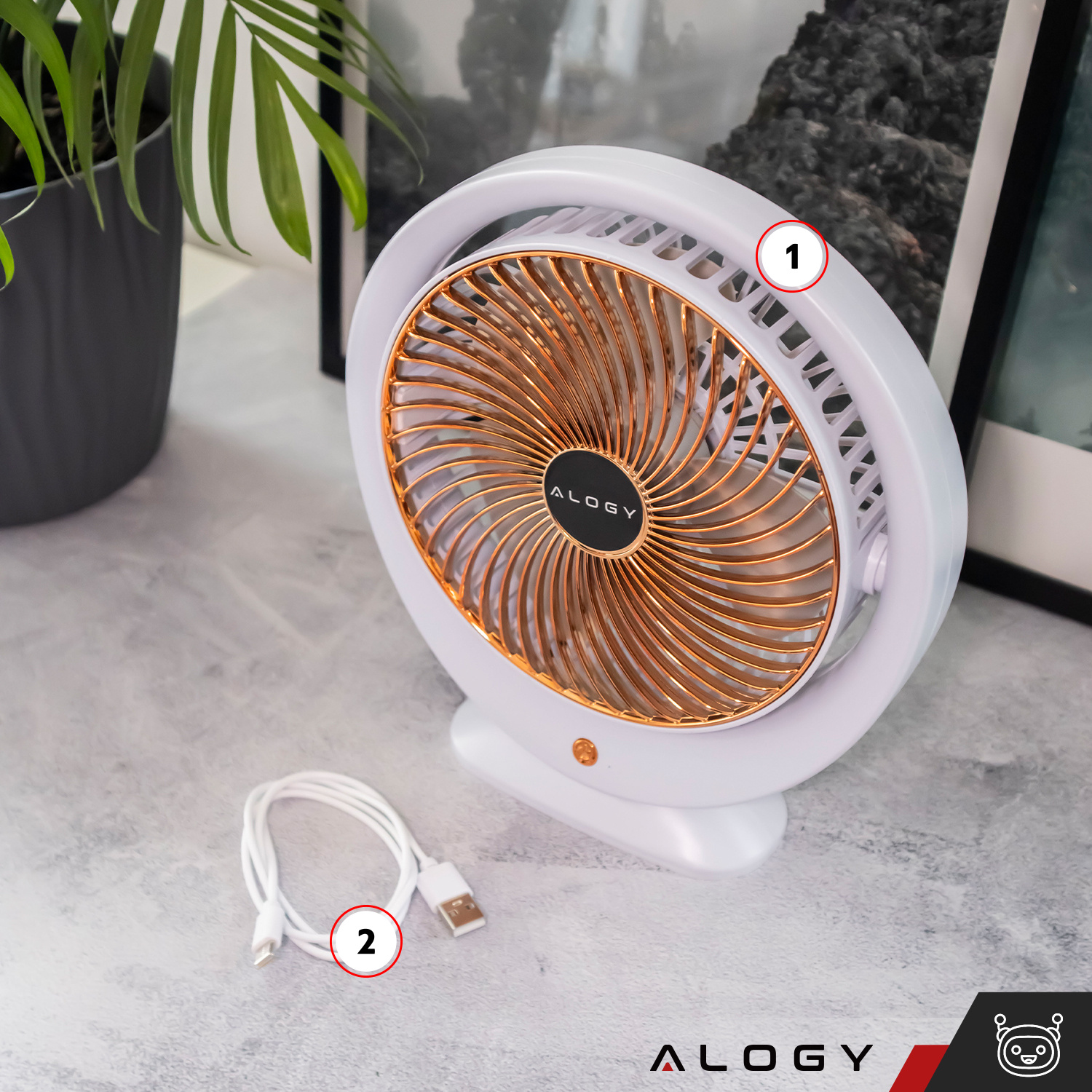 Opinie o Wentylator wiatrak biurkowy stojący mocny mały przenośny bezprzewodowy 1200mAh USB-C Alogy Biały