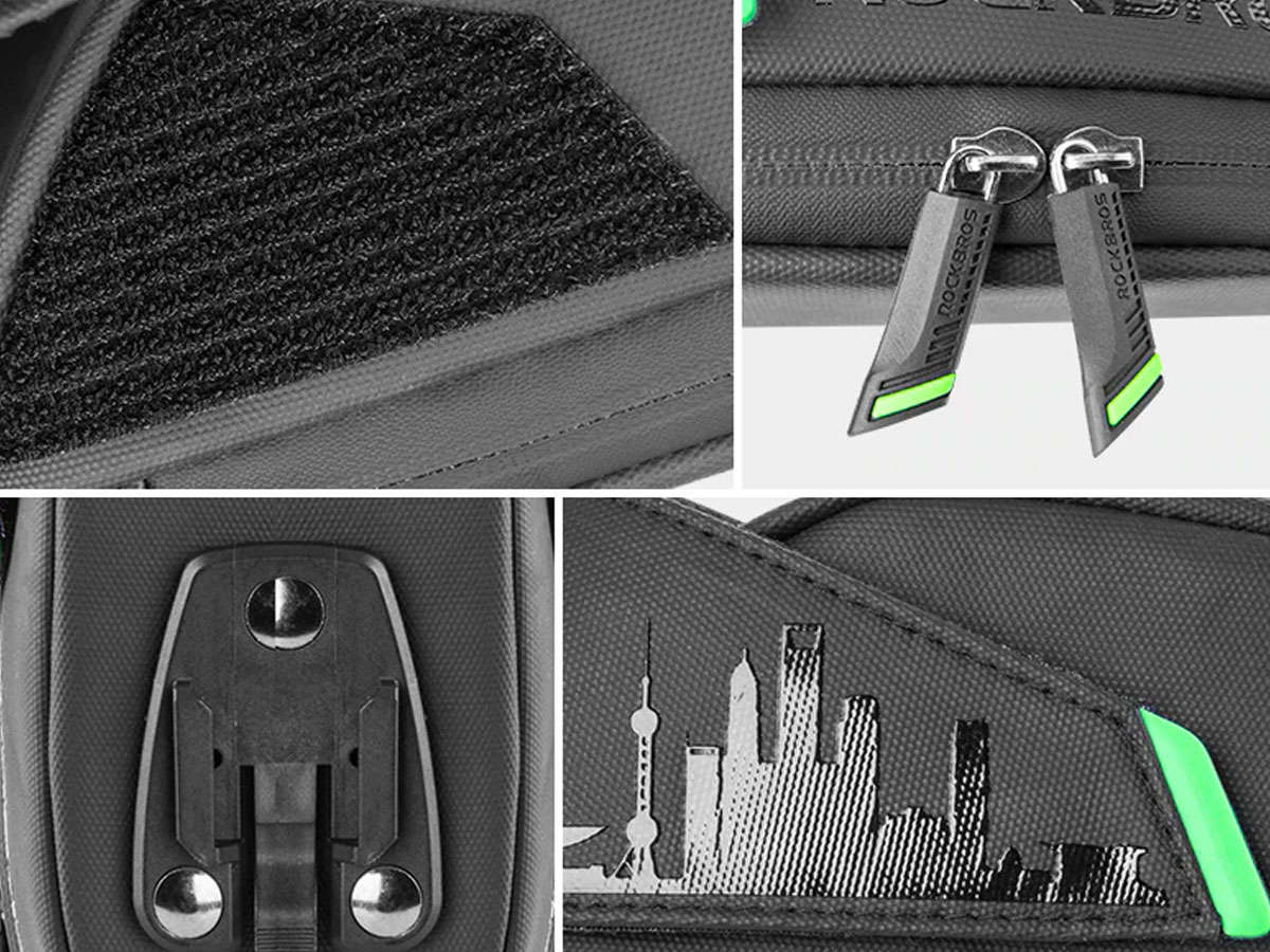 Torba marki RockBros z serii C27-1 na rower to wysokiej jakości saszetka wodoodporna. Mocny szew i precyzyjne wykończenie sprawiają, że nasze osobiste rzeczy będą jeszcze bardziej bezpieczne. Torba nie odkształca się, jej pojemność to ok. 1,5 litra.