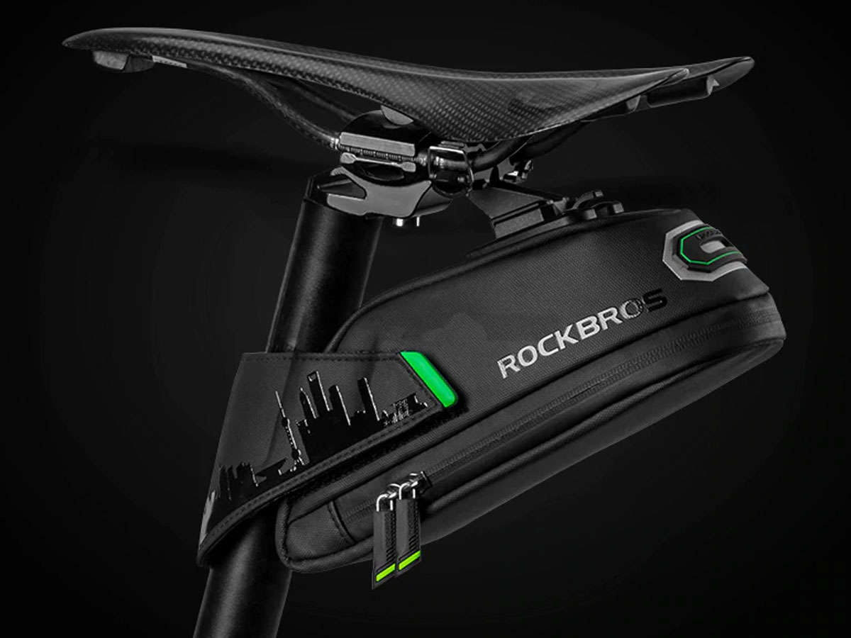 • Wodoodporne etui rowerowe pod siodełko na narzędzia RockBros C27-1 to uniwersalne etui, które zapewni bezpieczeństwo wszystkim niezbędnym akcesoriom podczas jazdy na rowerze. Etui wyposażone w odblaskowe wstawki i uchwyt na dodatkową lampkę.