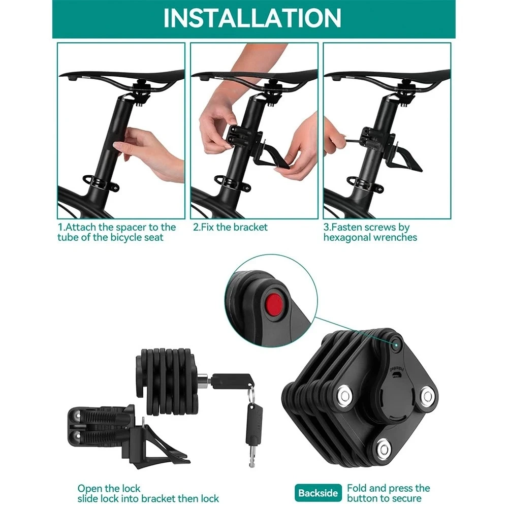 Zapięcie rowerowe Rockbros WD795 składane, zamykane na klucz - czarne