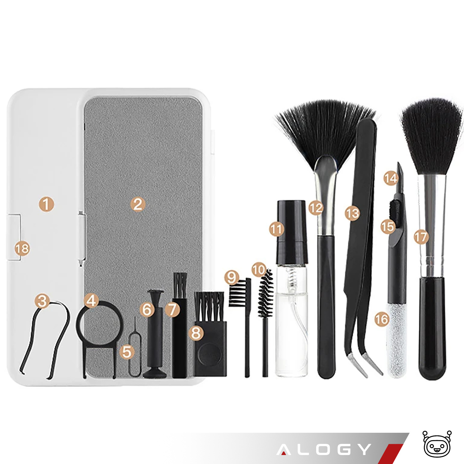 Zestaw czyszczący Alogy Cleaner Set 18w1 do małej elektroniki to kompleksowe rozwiązanie do utrzymania czystości w trudno dostępnych miejscach, różnych urządzeń elektronicznych, takich jak: telefony, smartfony, komputery, zegarki, słuchawki, głośniki, aparaty i klawiatury.