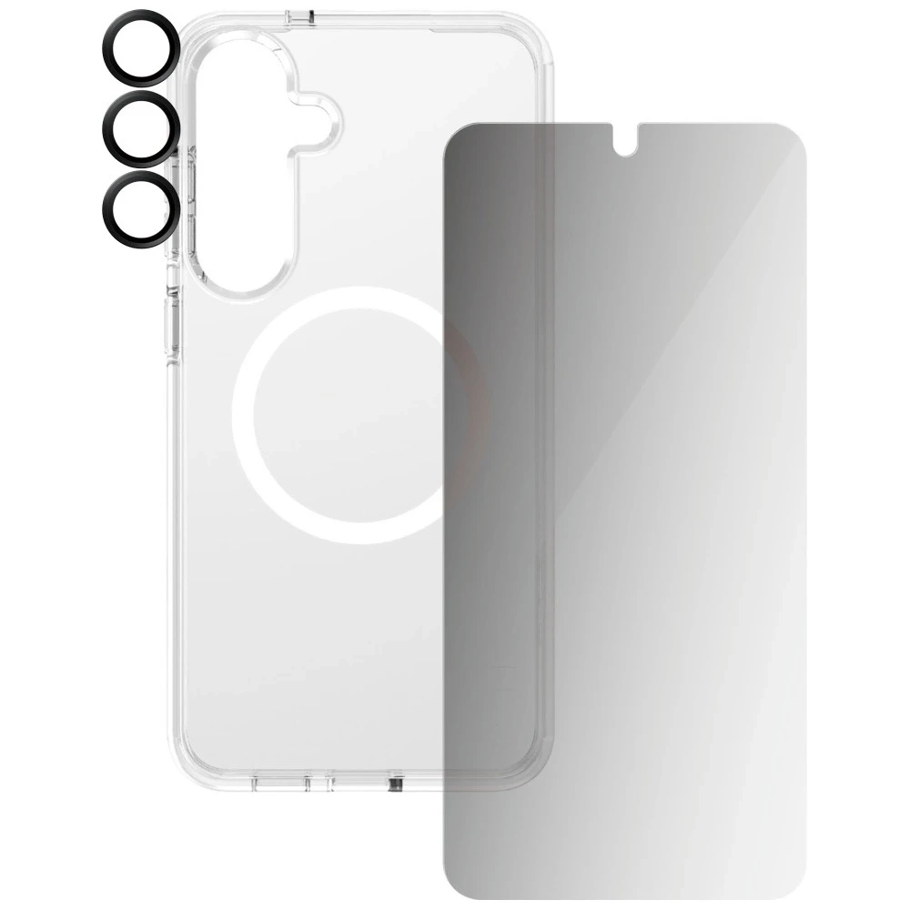 Zestaw ochronny CARE by PanzerGlass 3w1 to kompleksowe rozwiązanie dla użytkowników Samsung Galaxy S25+, którzy oczekują pełnej ochrony urządzenia. Zestaw obejmuje wytrzymałe etui, szkło prywatyzujące oraz ochronę na obiektyw aparatu, zapewniając maksymalne bezpieczeństwo i wygodę użytkowania.