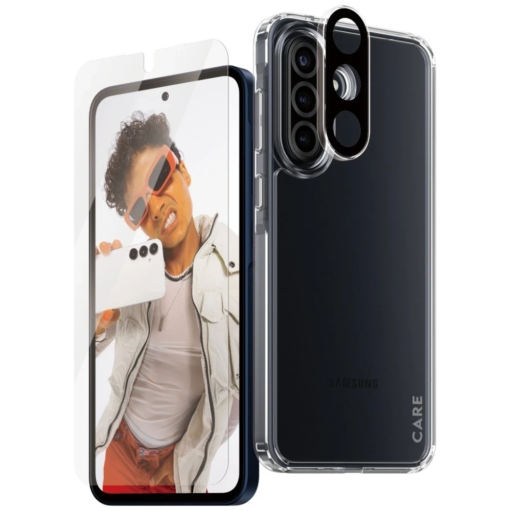 Zestaw ochronny do Samsung Galaxy A36 5G CARE by PanzerGlass Flagship 3w1 to pełne zabezpieczenie Twojego smartfona. W jego skład wchodzą etui Urban Combat, szkło hartowane oraz osłona obiektywu, zapewniając kompleksową ochronę przed zarysowaniami, upadkami i codziennym zużyciem.