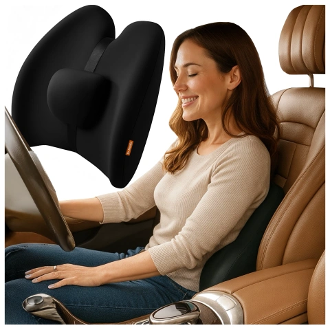 Poduszka samochodowa masująca lędźwiowa – ergonomiczne wsparcie pleców i odcinka lędźwiowego, elektryczny masażer z wibracjami i regulacją wysokości dla kierowcy i pasażera – Dr.Medic RelaxLumbar™